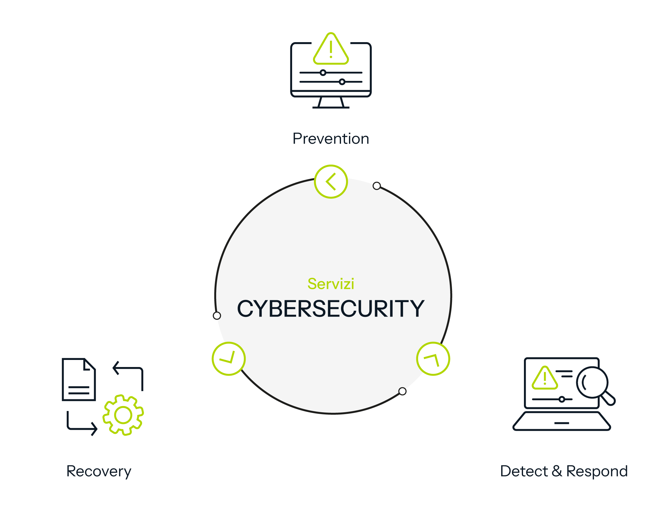 Non ci limitiamo a difendere, ma costruiamo un sistema che cresce con la tua azienda. Con un approccio in tre fasi, trasformiamo la sicurezza in un ciclo continuo di analisi, controllo e resilienza, capace di adattarsi alle sfide di oggi e di domani.